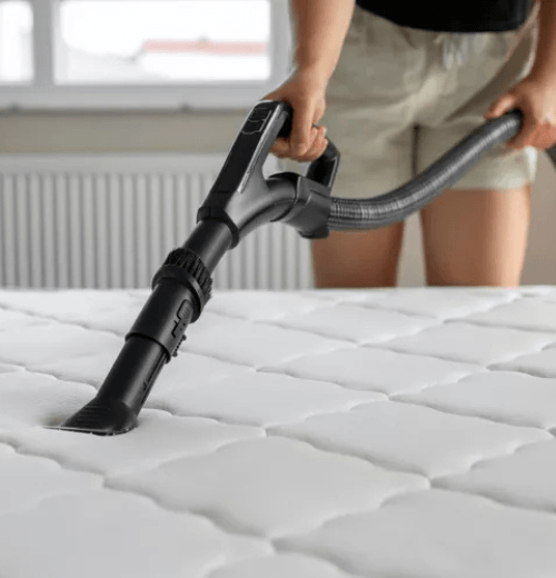 Le Matelas est soigneusement dépoussiéré et préparé pour un nettoyage en profondeur.
